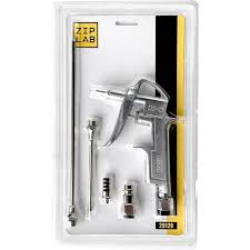 Инструмент для очистки сжатым воздухом, а "аксессуары в комплекте" означают наличие насадок-удлинителей для работы в труднодоступных местах, таких как сопла различной длины и формы, которые расширяют его функционал для обдува узких щелей и поверхностей, делая его универсальным помощником в автосервисах и мастерских.
