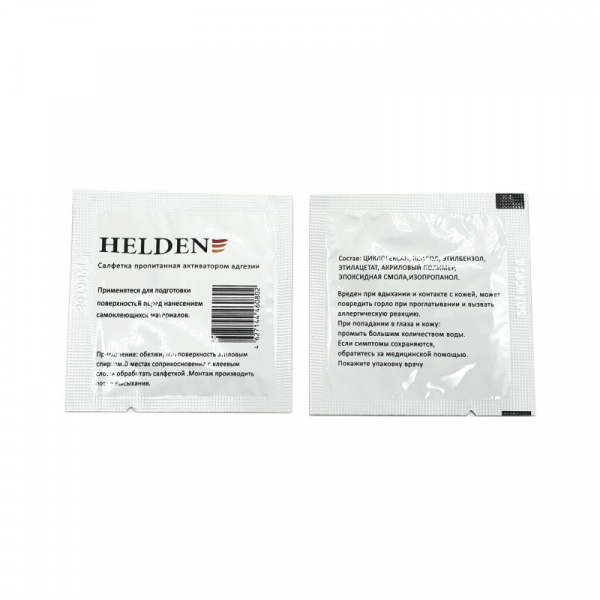 Салфетка пропитанная активатором адгезии HELDEN является уникальным и незаменимым средством в том случае, когда вам понадобится обезжирить и приклеить на поверхность любое самоклеющееся изделие. На поверхности покрытия автомобиля имеются мельчайшие поры, которые при эксплуатации автомобиля забиваются пылью, грязью, жировыми отложения при использовани воска и полиролей кузова. Избавится от всего этого легко с помощью салфетки с адгезивными активаторами, которые специально разработаны для применения с двусторонними клеющихся материалов.Для любителей тюнинга, создания единого стиля как внутри, так и снаружи автомобиля, салфетка послужит удобным, карманным помощником. С ее помощью Вы сможете удачно приклеить: молдинги, дифлекторы окон, наклейки, а также склеить пластиковые и окрашенные предметы.